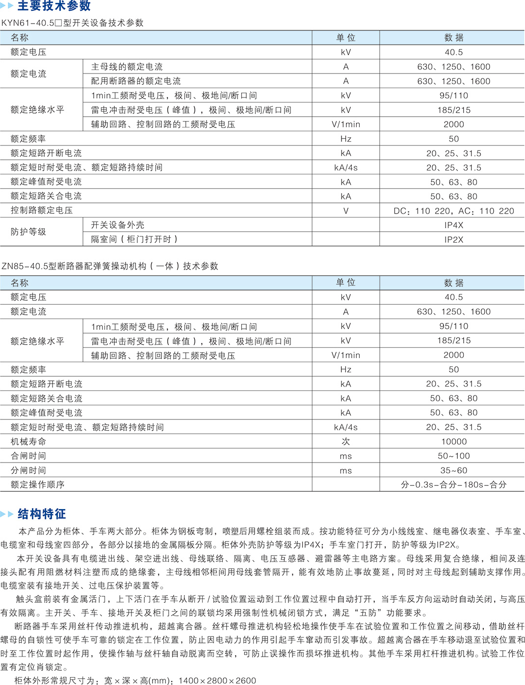 KYN61-40.5 鎧裝移開式交流金屬封閉開關(guān)設(shè)備