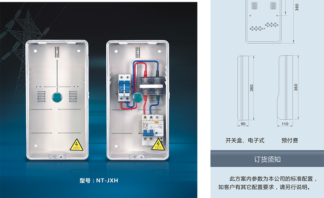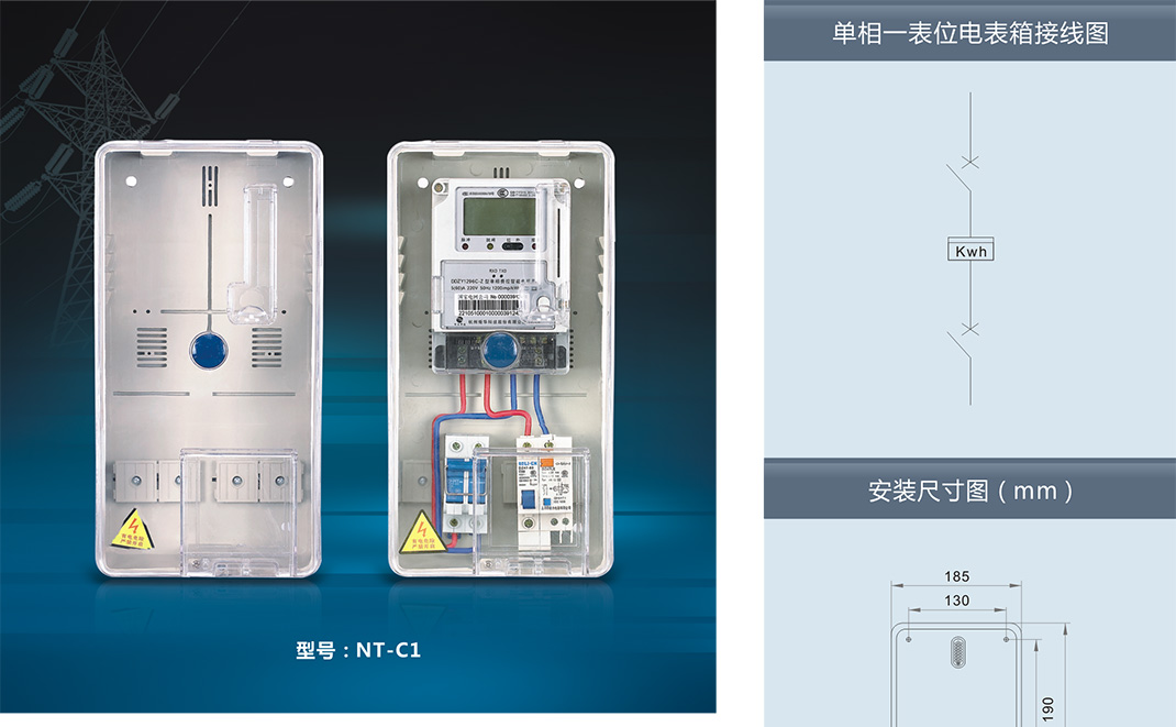 ,采用進口聚碳酸酯(PC)和阻燃ABS工程塑料制成。具有抗沖擊、抗老化、耐腐蝕、透明度高、抗紫外線、安裝方便等優(yōu)點,并且具有用電安全保護,用戶分離控制,數據采集, 防盜電等功能。產品適合安裝電子式、機械式、智能IC卡預付式、智能多費率式電表。南騰NT系列透明