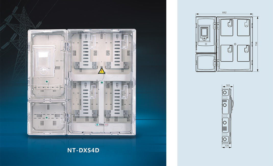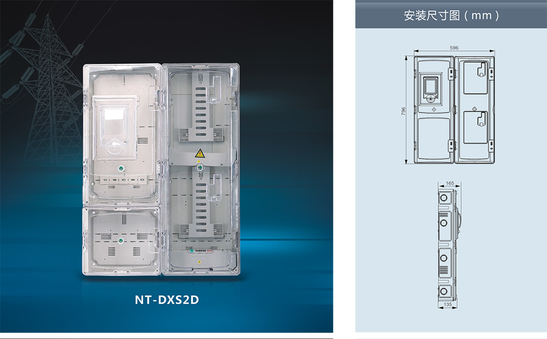 電表箱生產(chǎn)廠家-浙江南騰電氣有限公司研發(fā)的NT系列透明塑料電表箱,采用進(jìn)口聚碳酸酯(PC)和阻燃ABS工程塑料制成。具有抗沖擊、抗老化、耐腐蝕、透明度高、抗紫外線、安裝方便等優(yōu)點(diǎn),并且具有用電安全保護(hù),用戶分離控制,數(shù)據(jù)采集, 防盜電等功能。產(chǎn)品適合安裝電子式、機(jī)械式、智能IC卡預(yù)付式、智能多費(fèi)率式電表。南騰NT系列透明塑料電表箱自推出市場(chǎng)以來,憑借其完美的設(shè)計(jì)理念,在電表箱行業(yè)遙遙領(lǐng)先。