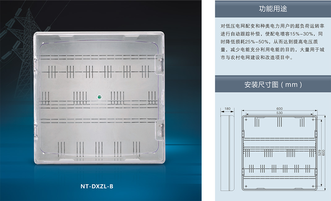 塑料電表箱,采用進(jìn)口聚碳酸酯(PC)和阻燃ABS工程塑料制成。具有抗沖擊、抗老化、耐腐蝕、透明度高、抗紫外線、安裝方便等優(yōu)點,并且具有用電安全保護,用戶分離控制,數(shù)據(jù)采集, 防盜電等功能。產(chǎn)品適合安裝電子式、機械式、智能IC卡預(yù)付式、智能多費率式電表。南騰NT系列透明